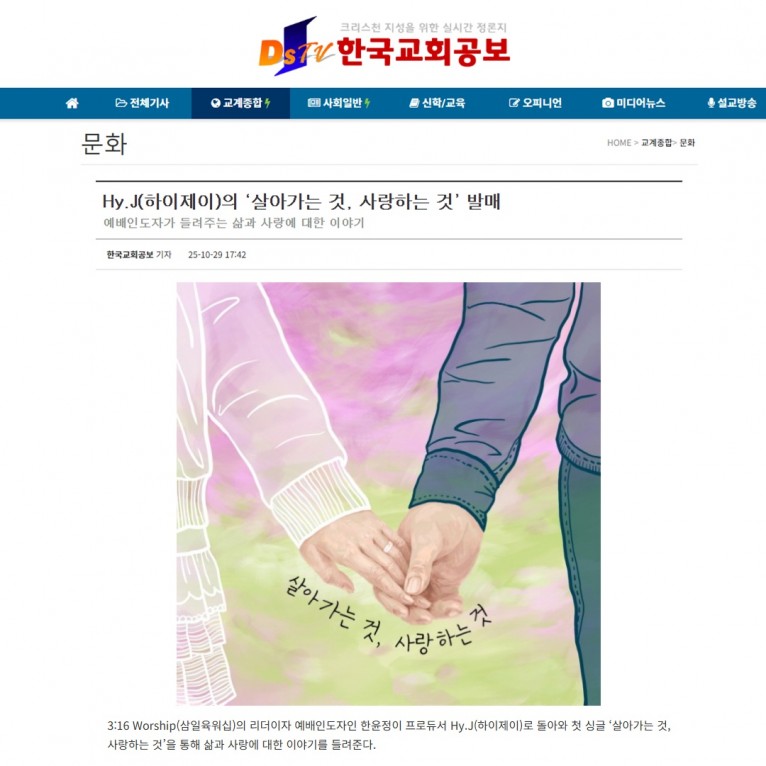 [기사] Hy.J(하이제이)의 ‘살아가는 것, 사랑하는 것’ 발매(한국교회공보)