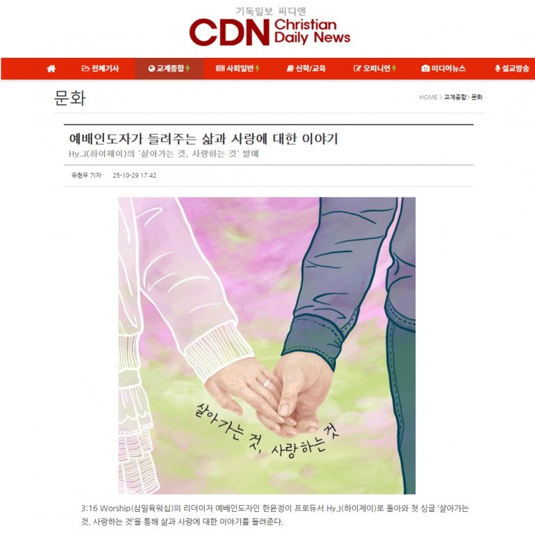 [기사] 예배인도자가 들려주는 삶과 사랑에 대한 이야기(기독일보 씨디엔)