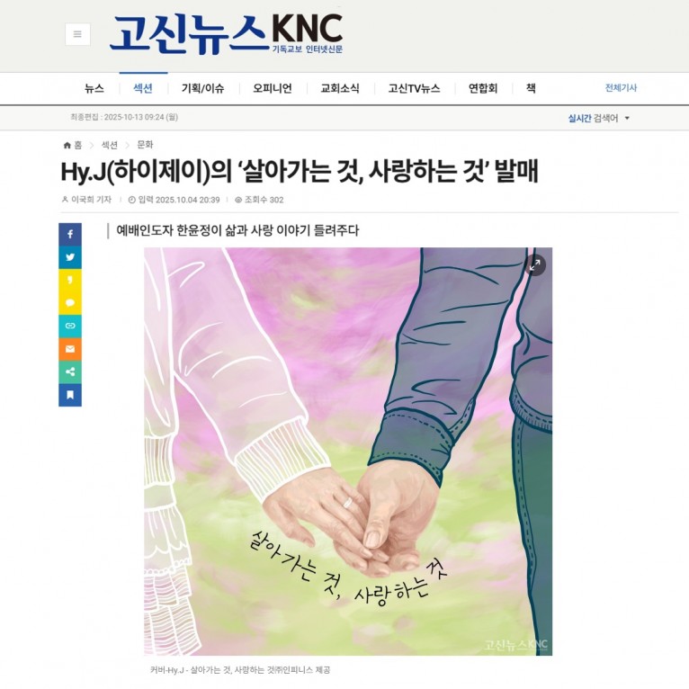 [기사] Hy.J(하이제이)의 ‘살아가는 것, 사랑하는 것’ 발매(고신뉴스 KNC)