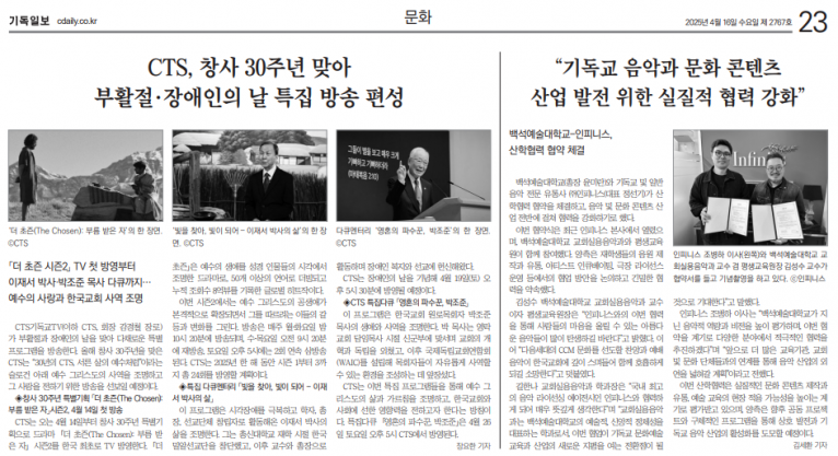 뮤직타임 [기사] 기독교 음악과 문화 콘텐츠 산업 발전 위한 실질적 협력 강화(기독일보)