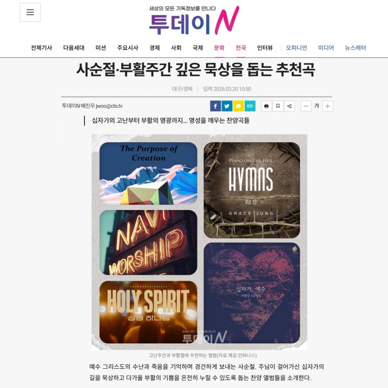 뮤직타임 [기획기사] 사순절·부활주간 깊은 묵상을 돕는 추천곡(기독교텔레비전 투데이N)